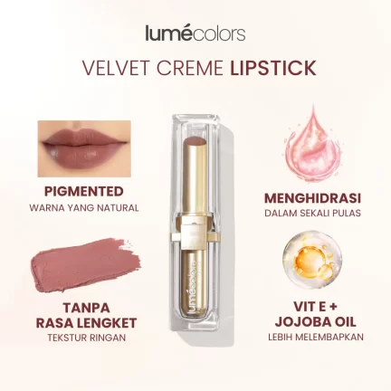 Jangan lewatkan kesempatan untuk memiliki lipstik nude yang sempurna ini. Dapatkan Velvet Creme Lipstick Nude dari Lumecolors sekarang dan rasakan perbedaannya! Kunjungi toko online kami atau gerai terdekat untuk melakukan pembelian.